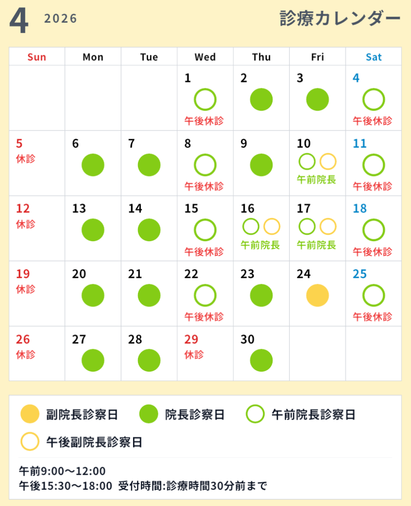午後診療時間 : 15:30〜18:00