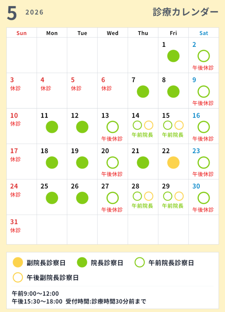 受付時間:診察時間終了30分前まで
